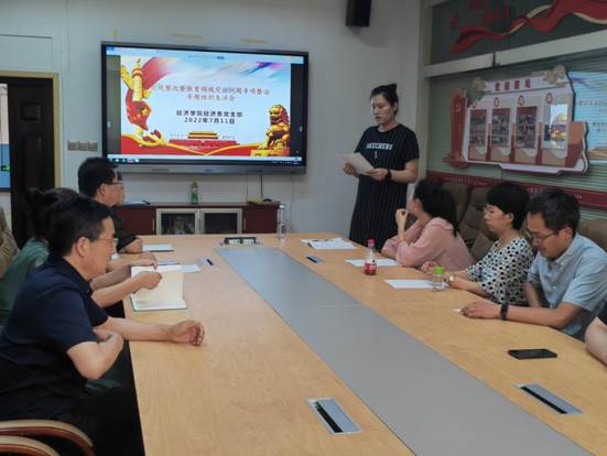 7月11日,经济系党支部召开2022年巡视整改暨教育领域突出问题专项整治专题组织生活会,会议由党支部书记赵倩主持。王胜利经理和全体党员教师参加会议。