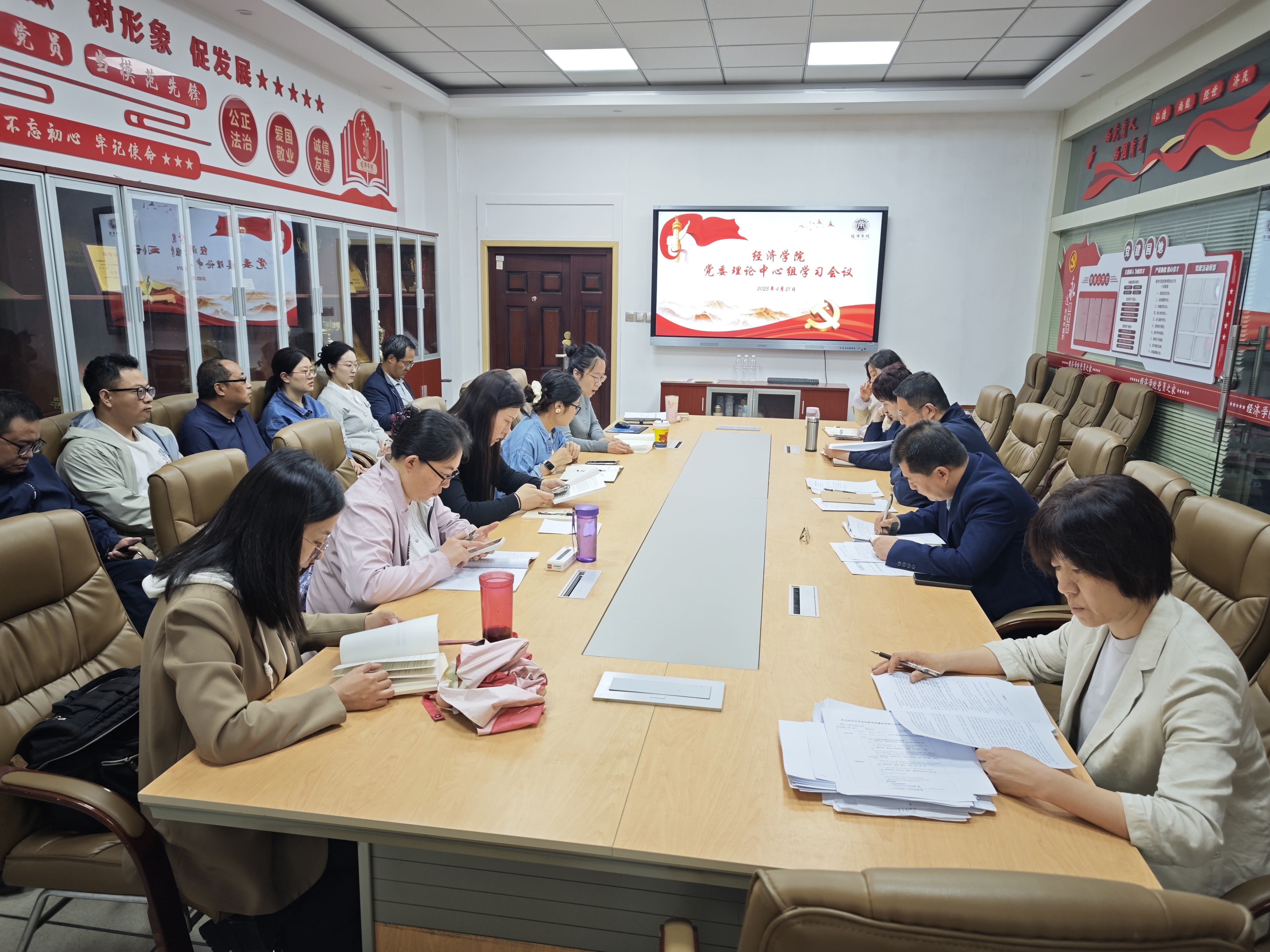 4月21日上午,公司党委在关天会议室召开理论学习中心组(扩大)学习会议。全体领导班子成员、党支部书记及科级干部参加,公司党委书记王森主持会议。