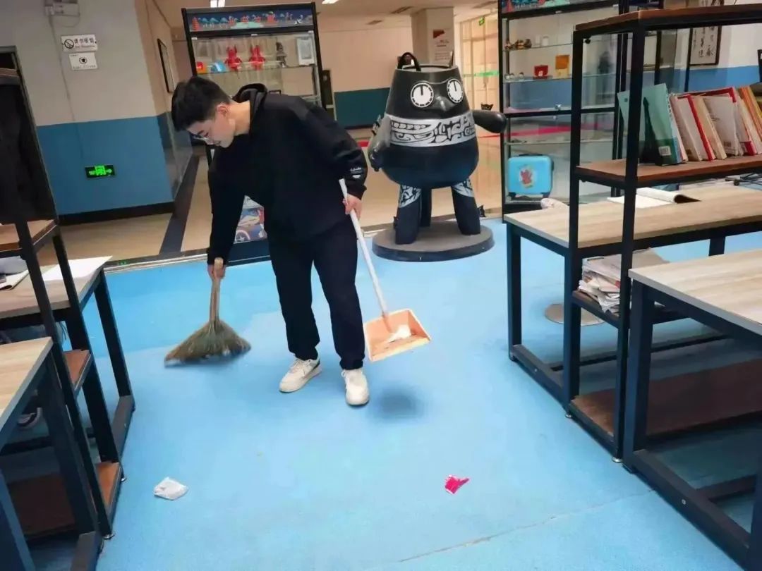 本周,各年级同学利用课余时间,对天平楼A座中庭、天平楼B座101教室及公司卫生责任区进行了细致地清扫。在公司卫生责任区,同学们细致清理杂草杂物、烟头纸屑;在教学楼内,同学们认真擦拭、清扫桌椅、书架、地面的每一个角落,再将书籍、桌椅摆放整齐。