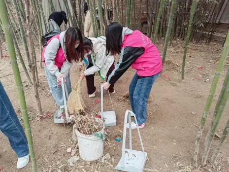 图为支部志愿者同学们清扫犬舍倾倒垃圾