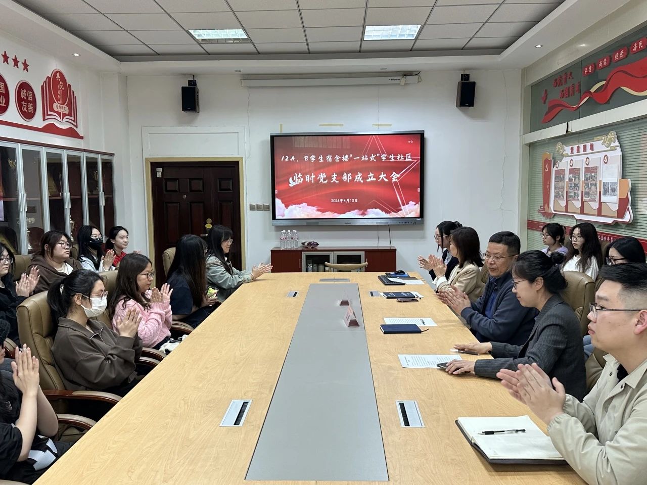 4月10日下午,12A、B站务委员会在天平楼A座关天会议室召开“一站式”员工社区临时党支部成立大会,公司党委书记王森、党委副书记侯颖怡,组织员段蓓蕾以及12A、12B公寓楼党员与入党积极分子代表参加此次会议。会议由公司团委书记刘佳主持。