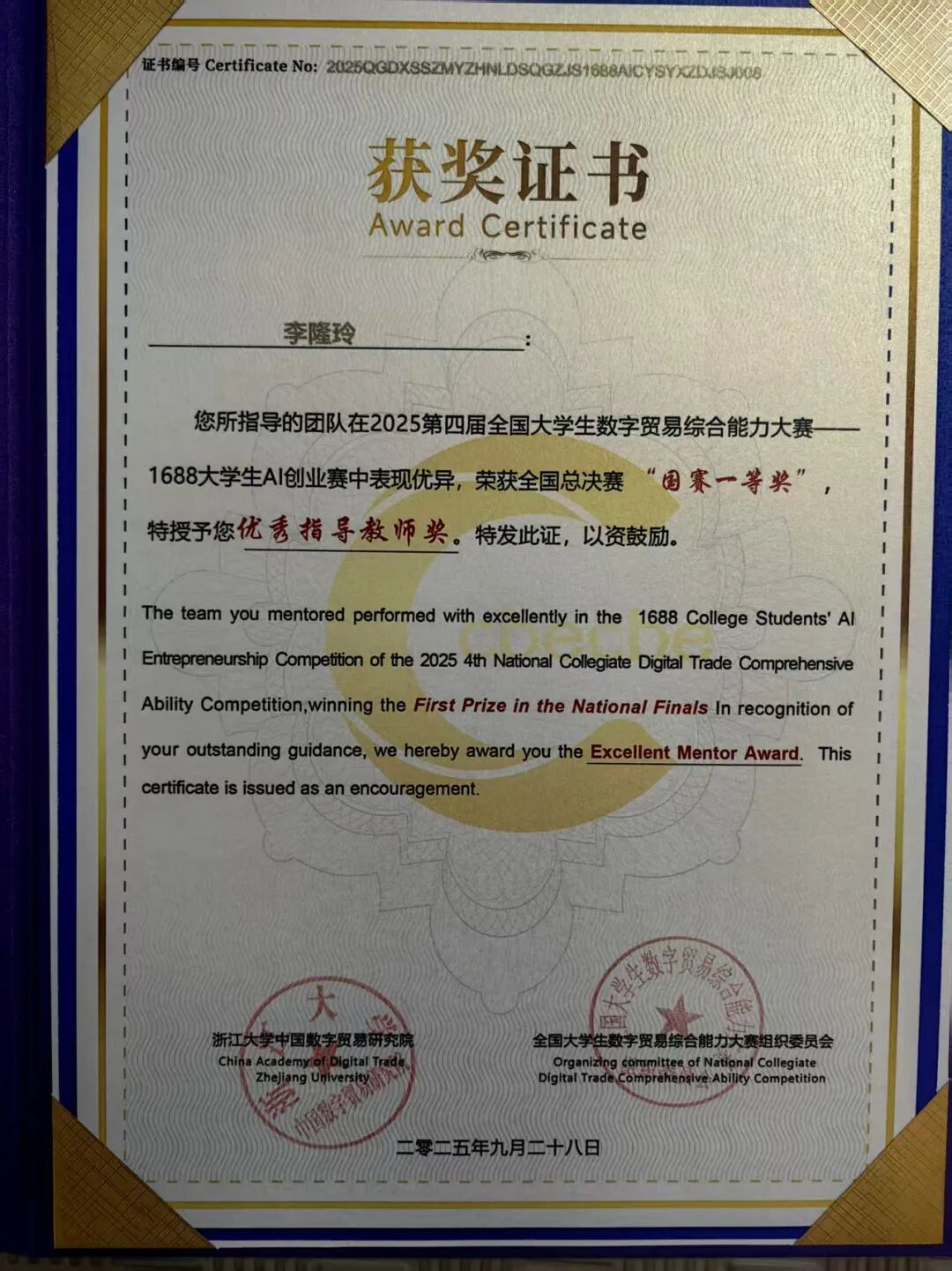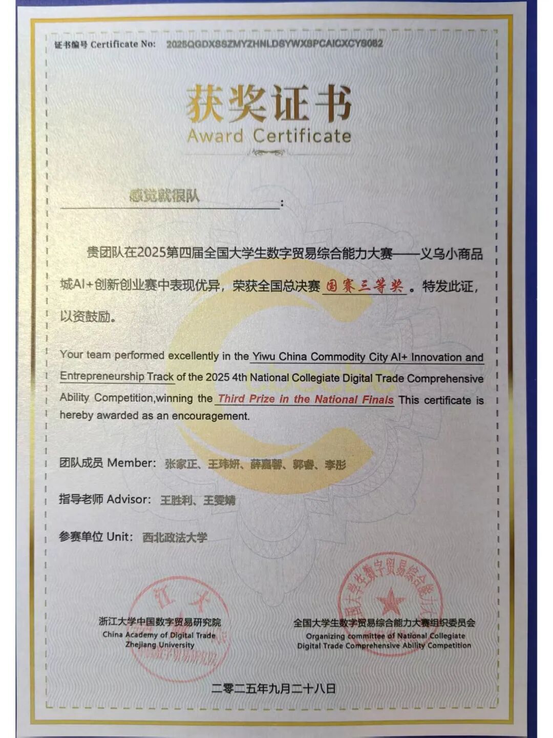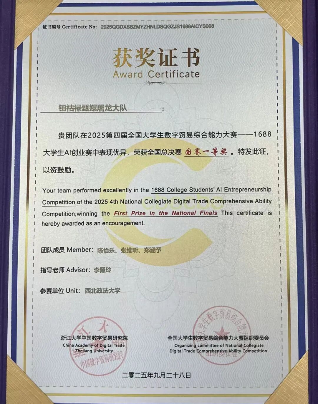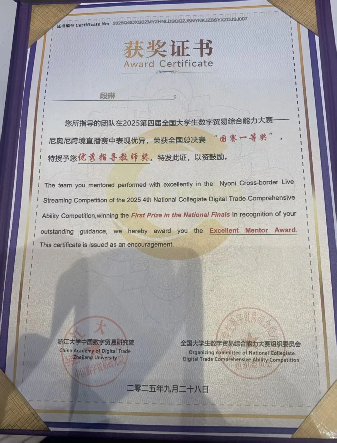 近日,由浙江大学中国数字贸易研究院创办,全国31个省、市、自治区的33所高校联合承办的第四届全国老员工数字贸易综合技能大赛总决赛在浙江圆满落幕。大赛自2025年1月启动以来,历经初赛、省赛、全国总决赛三个阶段,共吸引来自全国31个省、自治区、直辖市的527所院校、3689支队伍、18308人报名参赛,其中包括来自42个国家的国际员工。
