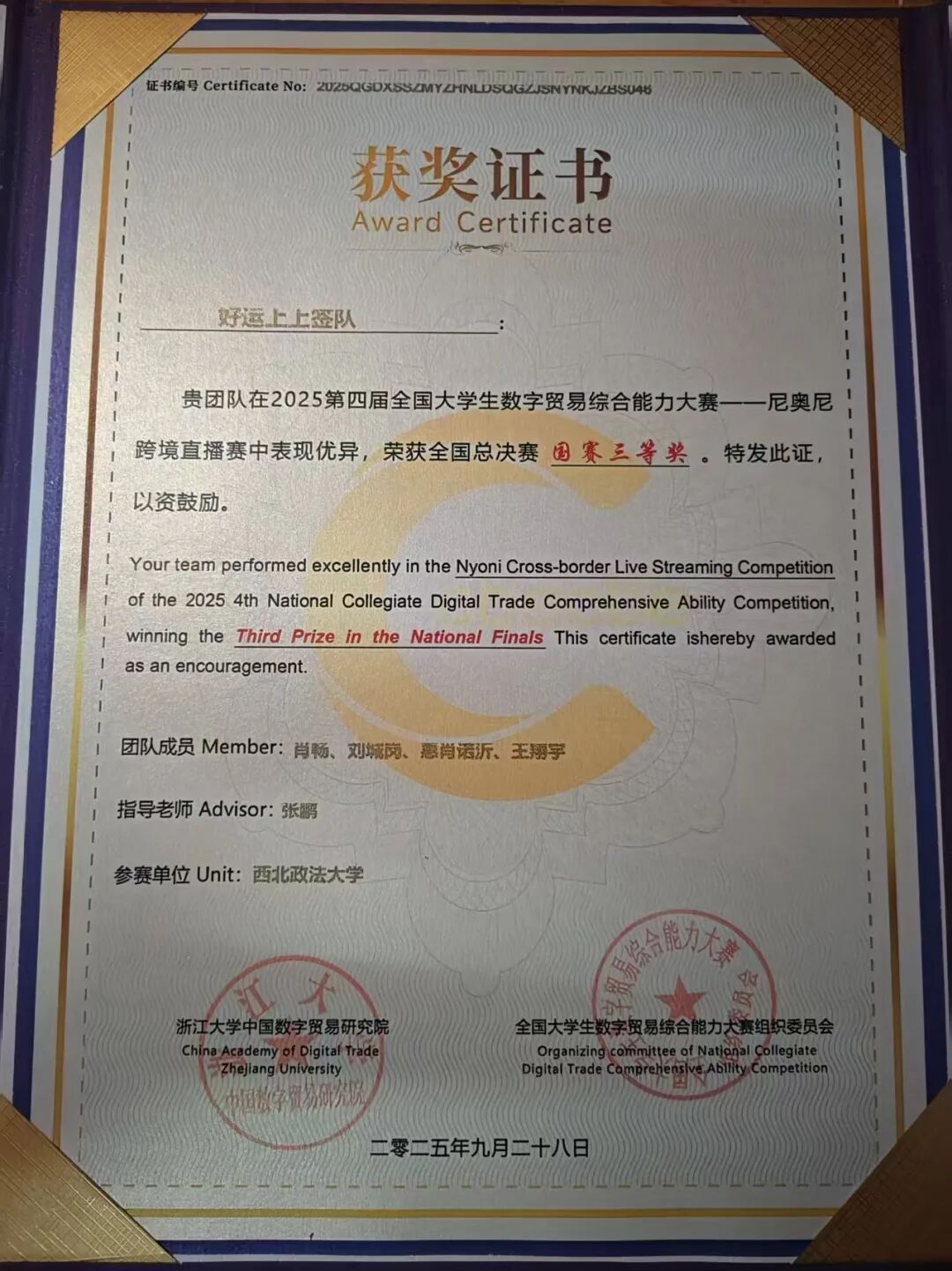 公司在2025年第四届全国老员工数字贸易综合技能大赛全国总决赛中荣获佳绩