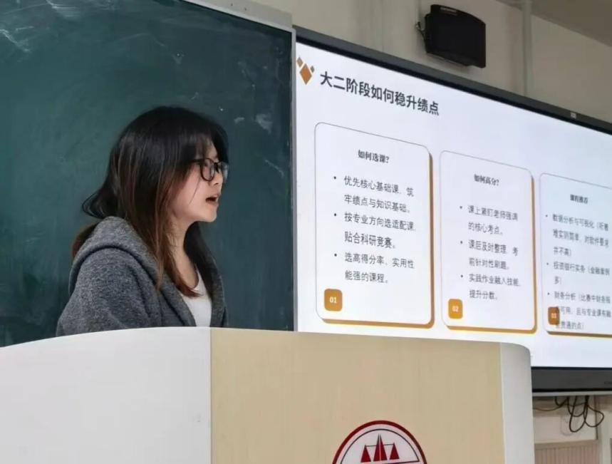 王小丫结合“从大一专业第8到大三专业第一”的逆袭轨迹,分享“全能发展”经验,学习提分上强调“细节定成败”,如按时完成作业签到、上课坐前排互动、合理安排不同类型科目复习;竞赛选择推荐“低成本高回报”赛道,如数学竞赛、数学建模、三创赛、大创,建议大一大二多参与文艺体育类活动;员工工作上建议班级优先选班长等职务,社团/组织大一多尝试、大二按需留任,想进编辑部可关注竞争力小的跨专业平台,最后以“抑郁是活在过去,焦虑是活在未来,平静才是活在现在”鼓舞新生沉心走好当下。