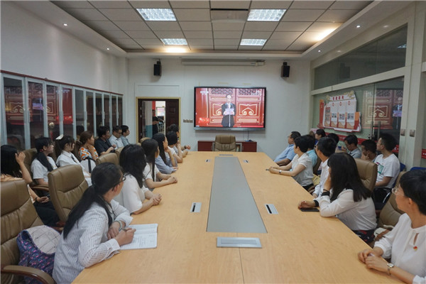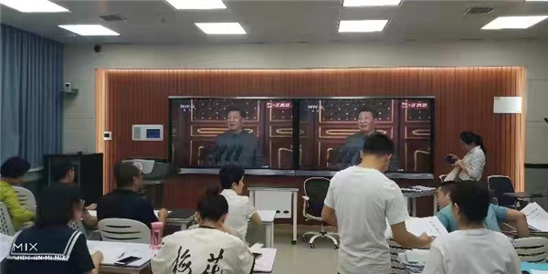 上午7点50,公司师生在指定集中收看地点集合就位,佩戴党徽,庄重而热切地等待大会直播开始。