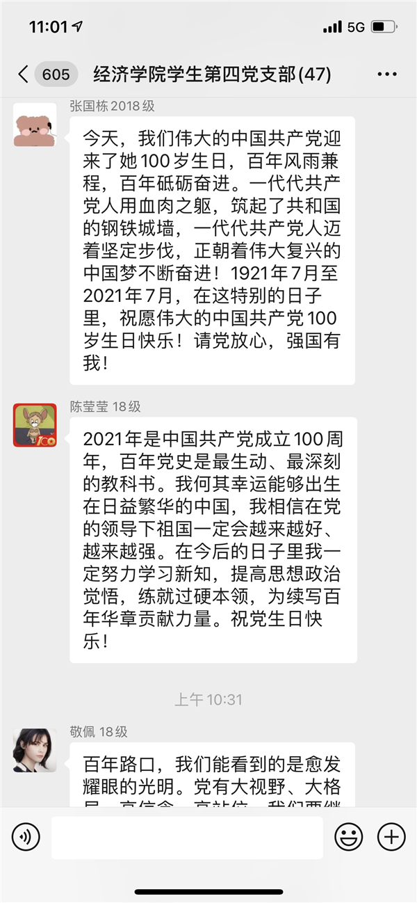 认真收看直播后,大三年级辅导员齐佳表示:“百年风华正茂见证了我们党光荣又伟大的发展历程,向世界证明中国共产党为什么能,中国特色社会主义为什么行,马克思主义为什么好。在这个特殊的日子,祝愿我们党生日快乐,也希望我们党员都能够牢记‘坚持真理、坚守理想,践行初心、担当使命,不怕牺牲、英勇斗争,对党忠诚、不负人民’的伟大建党精神,作为奋斗的不竭动力。”