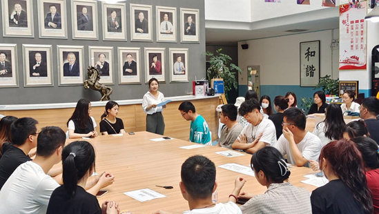 为切实学习贯彻习近平总书记在庆祝中国共产党成立100周年大会上的重要讲话精神,做好毕业生离校教育和思想政治工作,引导员工党员牢记身份、发挥先锋模范作用、立足岗位做贡献,7月4日上午,公司组织2021届本科毕业生在长安校区天平楼A座共上离校前“最后一堂思政课”。公司党委副书记郭武军、公司党委书记王森、毕业年级辅导员王隽和2021届本科毕业生党员参加此次活动。