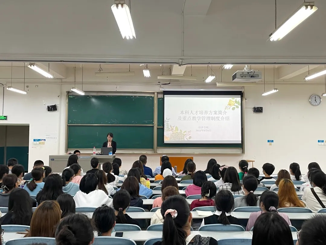 会上,首先由教务办老师徐靓介绍本科人才培养方案及重点教学管理制度。她从大学四年教学安排出发,依次介绍了专业学分结构、实践教学环节、员工导师工作、课程考核规定、学业警示与留级、毕业与学位制度和退学制度并敦促新生遵守相关规定,努力学习。