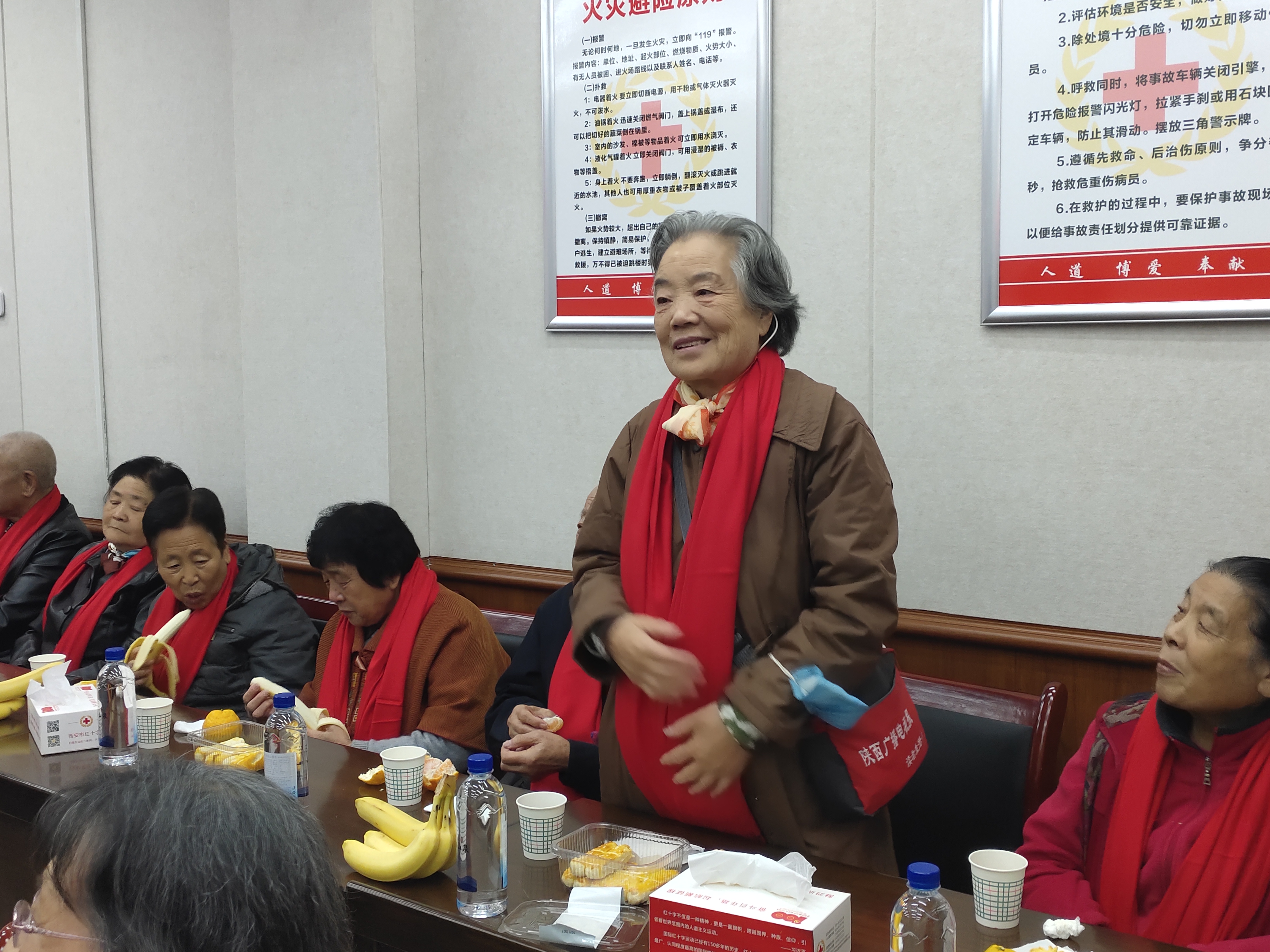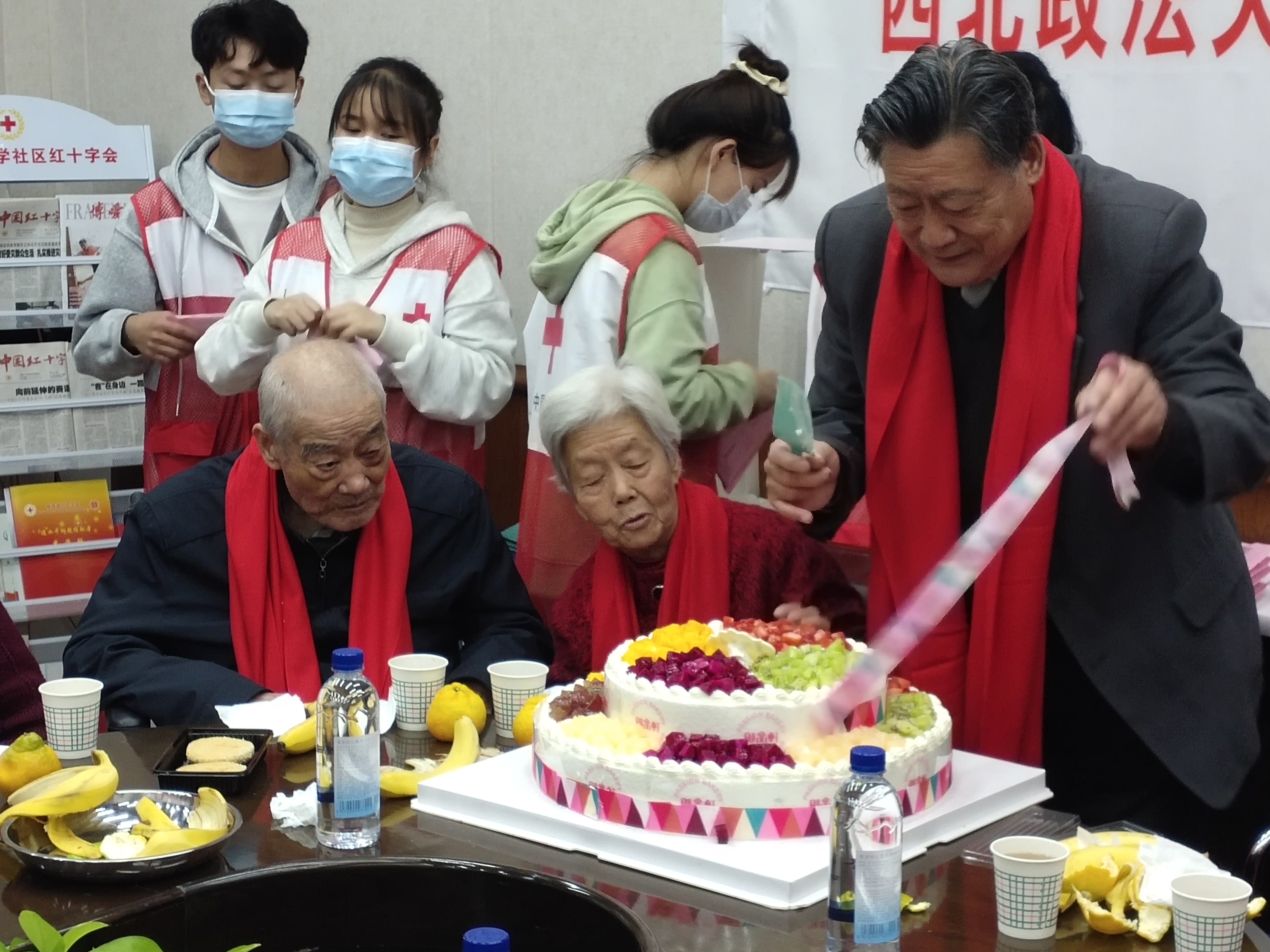 联欢活动上,志愿者们先后表演了精心编排的节目《绒花》《唱支山歌给党听》、太极拳表演等,一首《映山红》引发大家的共鸣,将活动现场的氛围推向高潮。老教师们也纷纷展现绝活,秦腔、快板、红歌等逐一登场亮相。大家现场分享蛋糕、点心和水果,在一片欢声笑语、满满浓情的氛围中结束了本次联欢。联欢结束,志愿者们和社区工作人员一同前往空巢、失独老人家中,为他们送去工会、社区的慰问,陪他们聊天、谈心。