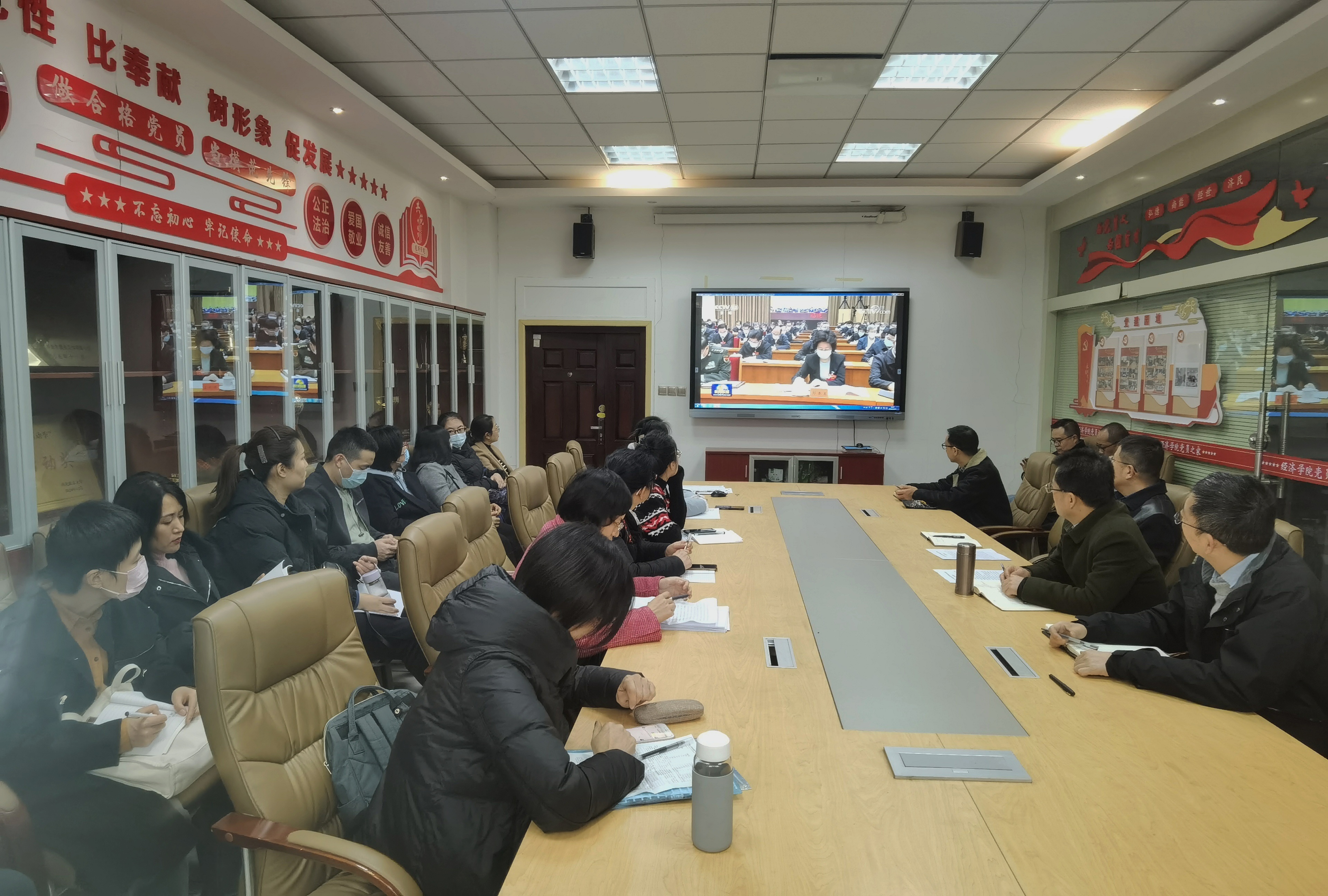 参会成员观看学习了全国宗教工作会议、中央经济工作会议和12月6日中共中央政治局会议视频,学习习近平总书记在中共中央政治局第三十五次集体学习时的重要讲话精神。
