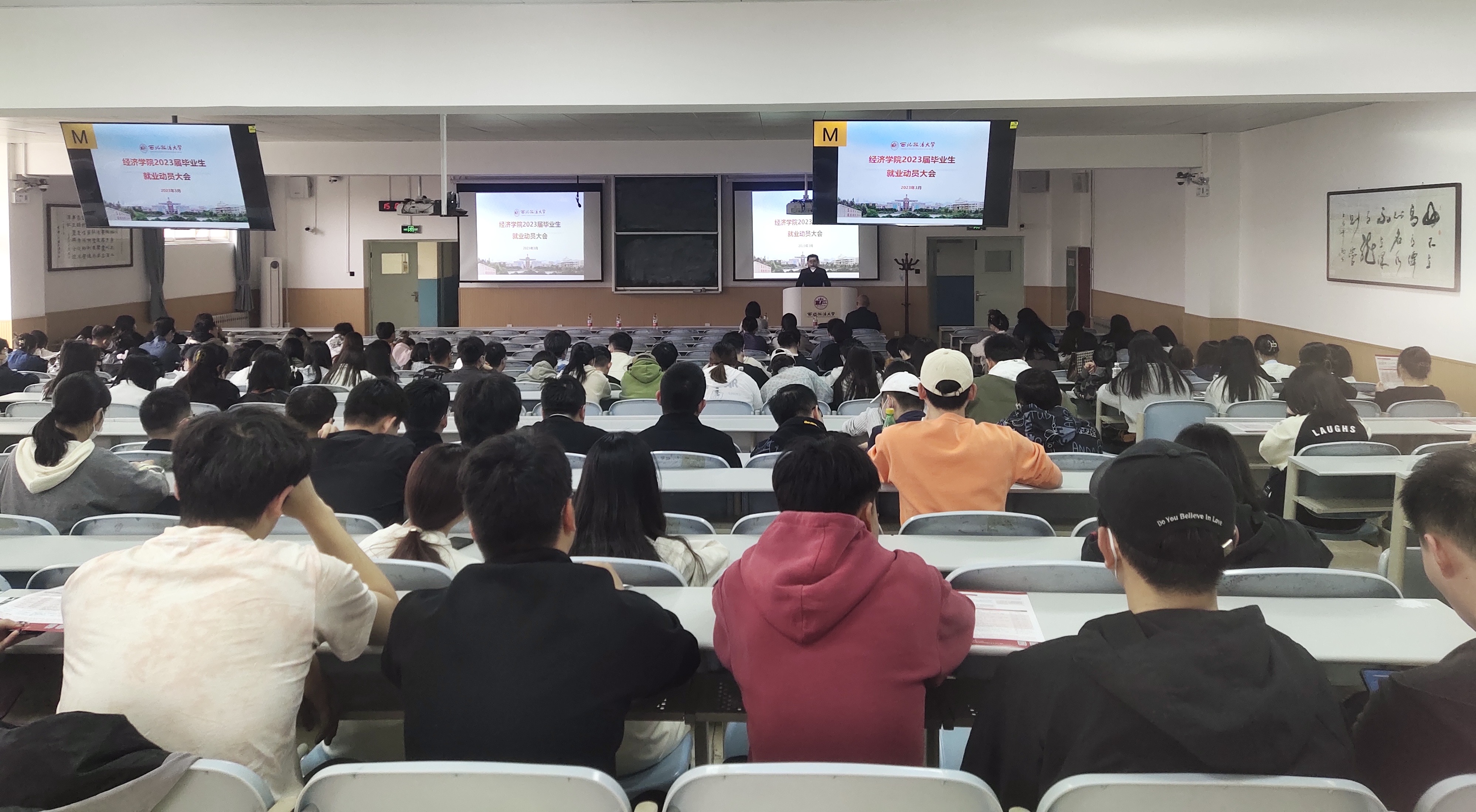 为落实教育部和省教育厅关于“春季促就业攻坚行动”的相关精神和要求,进一步推进毕业生就业工作,引导2023届毕业生紧抓就业机遇、合理规划人生,365英国上市官方网站于3月15日在长安校区召开了2023届毕业生就业动员大会。公司经理王胜利、党委副书记张文渊,人才招聘处杨军,国际交流与合作处武媛媛出席会议,2023届全体在校毕业生及部分2020级在校生代表参加会议。会议由2023届毕业年级辅导员周瑾萱主持。