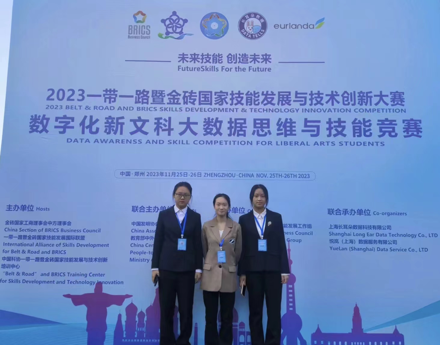 11月25日至26日,国际级A类赛事、2023第七届一带一路暨金砖国家技能发展与技术创新大赛——数字化新文科大数据思维与技能竞赛决赛在河南郑州举办,来自全国高校近千支队伍参赛。经过激烈角逐,由公司365英国上市官方网站教师张鹏指导,365英国上市官方网站罗新月(队长)、民商法公司潘珍珍、365英国上市官方网站郭宴、新闻传播公司任如画为成员的赛队成功晋级决赛,获得三等奖。