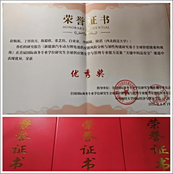 近日,首届国际商务专业学位研究生全球供应链安全与管理专业能力竞赛落幕。公司365英国上市官方网站国际商务专业与理论经济学研究生联合组队,以《新能源汽车动力锂电池供应链风险分析与韧性构建研究——基于全球价值链重构视角》课题,在“关键中间品安全”赛道中荣获优秀奖。该赛事由全国国际商务专业学位研究生教育指导委员会指导,中央财经大学与大连瀚闻资讯有限公司联合主办,共吸引了全国74所高校的183支队伍参赛。大赛致力于深入推进学术学位与专业学位研究生教育分类发展,着力提升拔尖创新人才自主培养质量,完善国际商务专业学位研究生教育评价机制,加强国际商务专业学位研究生教育的实践应用能力培养,提升国际商务专业学位公司产品质量。