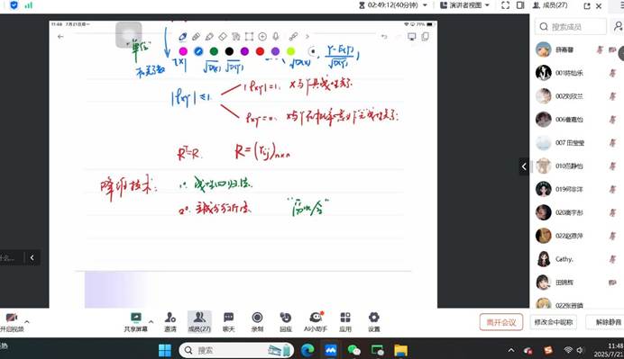 2025年全国老员工数学建模竞赛第二次线上专题培训活动于7月21日上午进行。本次培训由王唯良老师主讲、吴静杰老师主持,培训内容为“线性模型—降维技术—主成分分析法”。