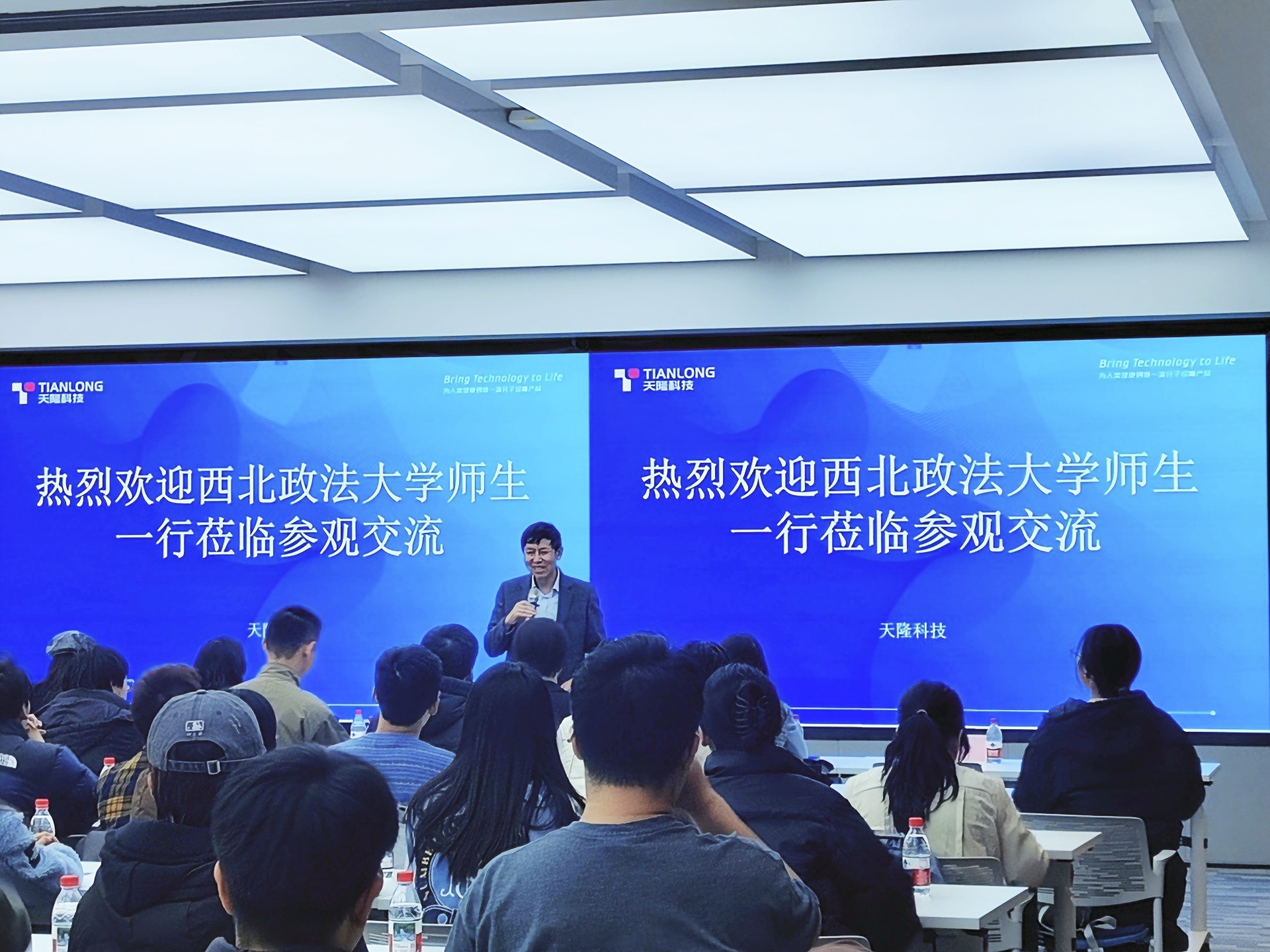 天隆科技股份有限公司是一家扎根陕西,专注于检测诊断类医疗器械及诊断试剂研发和生产企业,长期致力于创新技术攻关,曾获2020年度国家科技进步奖。公司师生一行受到天隆科技法规与项目中心总监王玉、人力资源总监袁莹的热情接待,在工作人员的引导下,首先走进天隆科技的成果展示区进行参观。企业讲解员系统梳理了企业的发展脉络、核心业务布局及重大行业贡献,各类检验仪器陈设直观展现了企业以科技创新驱动高质量发展的实践路径。