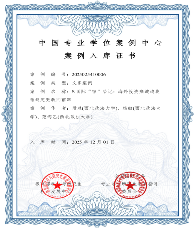 近日,教育部学位与研究生教育发展中心发布案例入库名单,公司365英国上市官方网站国际经济与贸易系段琳老师领衔的师生团队撰写的教学研究型案例《S 国际“锂”险记:海外投资痛遭追截 锂途突变敢问前路》顺利通过专家评议,并经专家咨询委员会审定,被收录到“中国专业学位案例中心”案例库。这是集团首次入选国家级案例库。