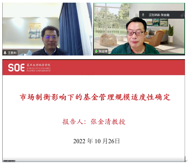 复旦大学张金清教授作题为《市场制衡影响下的基金管理规模适度性确定》学术报告