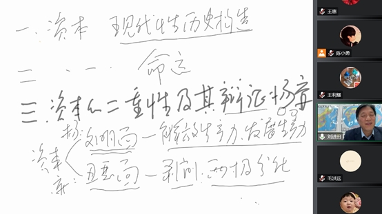 最后,刘教授与参与报告的师生进行了互动,结合刘教授的讲授内容,师生就“在当今社会弃资本的丑恶面应该采用什么样的方式”“现在前沿的数字经济与政治经济学中的剩余价值理论之间的关系”等问题与刘教授进行了探讨,刘教授详细解答了师生们提出的问题,报告会在同学和老师们的感谢声中圆满结束。