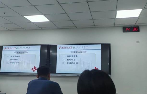 延宏教授主要从三个方面展开了本次讲座的内容,第一是名词化现象,第二是被动语态,第三是非谓语动词。延教授对这三点进行了详细的解释,并告诉师生们英语学术论文写作过程中要用以上这三点把复杂句变为简单句。只有这样,才能让英语学术论文语言更加地道化。