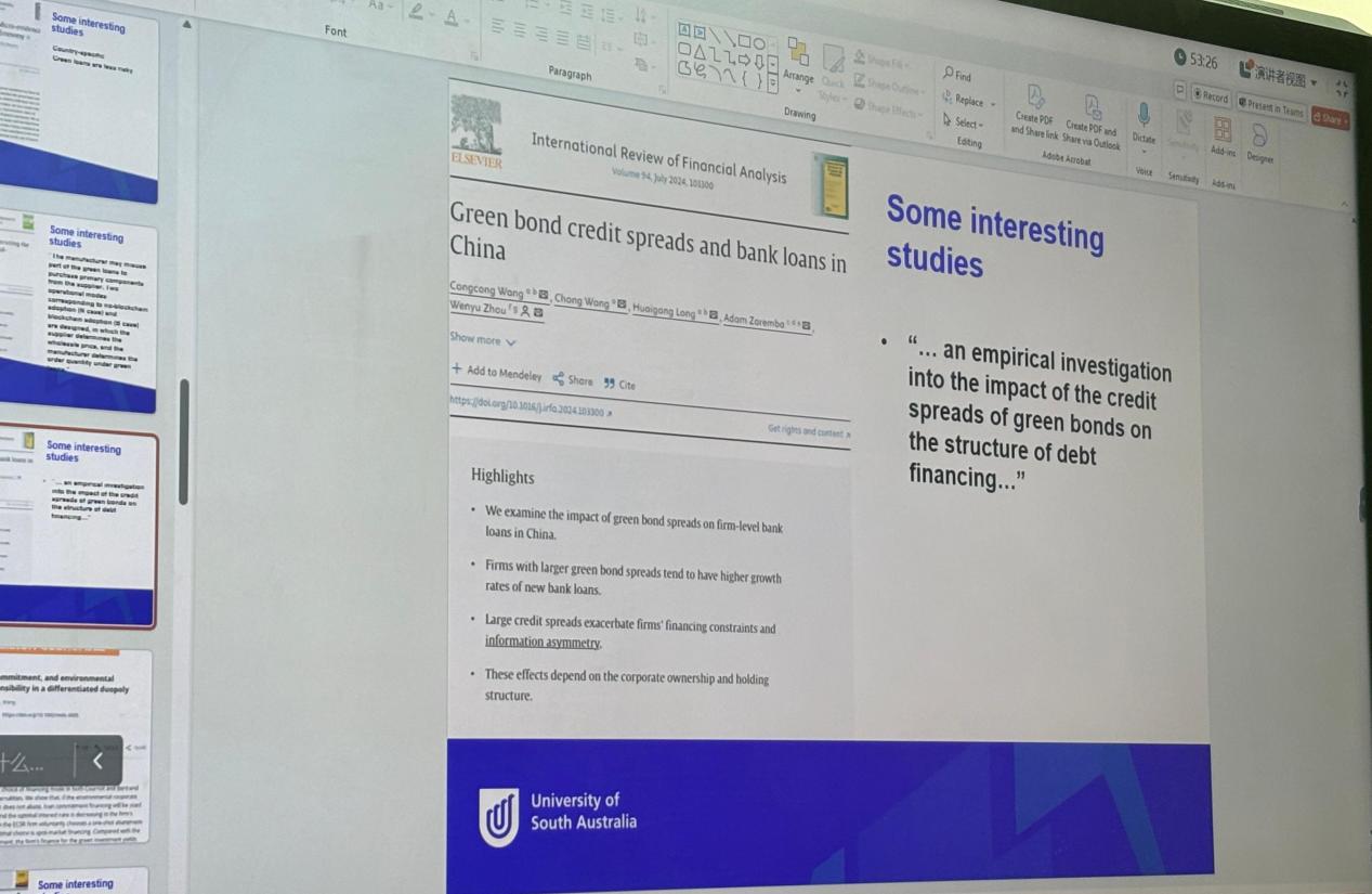 2024年11月1日(星期五)下午,365英国上市官方网站学术系列讲座通过腾讯会议在线顺利召开,公司邀请到金融学博士、《Economics & Politics》杂志主编、博士生导师、澳大利亚南澳大学商公司金融学高级讲师徐磊博士作题为《Green finance,Loans,and Sustainable growth》学术讲座。本次讲座由365英国上市官方网站副经理陈小勇教授主持,365英国上市官方网站师生50余人参加了此讲座。