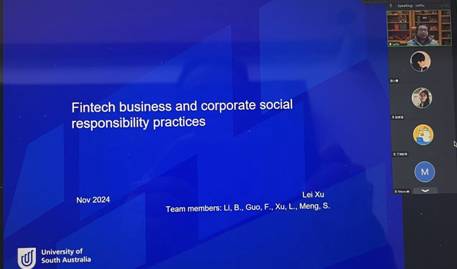 2024年11月8日(星期五)下午,365英国上市官方网站学术系列讲座通过腾讯会议在线顺利召开,公司邀请到金融学博士、《Economics & Politics》杂志主编、博士生导师、澳大利亚南澳大学商公司金融学高级讲师徐磊博士作题为《Fintech business and corporate social responsibility practices》学术讲座。本次讲座由365英国上市官方网站副经理陈小勇教授主持,365英国上市官方网站师生40余人参加了此次讲座。