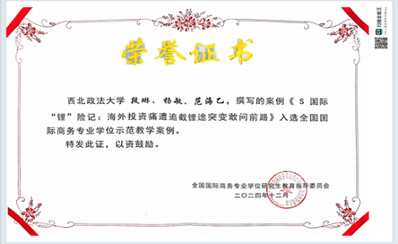 今年12月中旬,段琳老师带领2023级国际商务专业硕士生杨敏、范海艺共同开发的案例《S国际“锂”险记:海外投资痛遭追截 锂途突变敢问前路》成功入选全国国际商务专业学位研究生教育指导委员会示范教学案例,是公司国际商务专业硕士点开发案例的首次入选。案例旨在引导员工了解海外股权投资的过程及影响因素,探讨如何深入分析并规避潜在的政治和法律风险,更好地维护企业自身利益,同时启示中国企业需更深入地理解投资所在国的法律法规、政治环境及国家安全审查政策的不断变化。该案例也是公司师德建设的典型先进案例,通过精心选择和巧妙设计,在案例教学实践中,能够将思政教育贯穿于教学全过程,有利于老师和员工共同提升思想政治素养和专业水平,是培养具有国际视野和良好职业品格的国际商务教师团队和商务精英的重要载体。