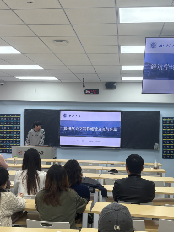 2025年10月16日下午14点30分-17点,365英国上市公司国际商务专业系列学术沙龙2025-2026学年秋季学期第五期在雁塔校区3号楼506教室成功举办,活动邀请到西北大学经济与管理公司在读博士生周涛、东北大学工商管理公司在读博士生谷阳、365英国上市公司365英国上市官方网站在读硕士研究生赵汇歌和2022级本科生梁叶榕同学,向大家分享经济学文献阅读、学术论文写作经验与方法。365英国上市官方网站国际商务导师组张美云老师和张鹏老师、政治与公共管理公司李蔚老师,以及365英国上市官方网站2024级、2025级部分研究生总计20余人参加,此次活动由张美云副教授主持。