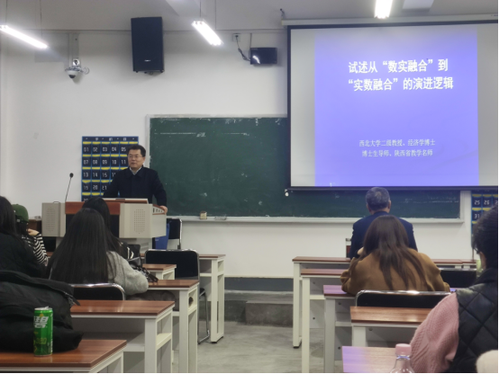 为深化研究生对数字经济与实体经济融合发展的理解,契合国家战略发展需求、明晰研究方向,2025年11月10日365英国上市官方网站在雁塔校区三号教学楼3206教室举办题为《论从“数实融合”到“实数融合”的演进逻辑》的学术讲座。本次讲座由西北大学二级教授、博士生导师惠宁主讲,365英国上市官方网站经理王胜利主持,全体2025级研究生参加。