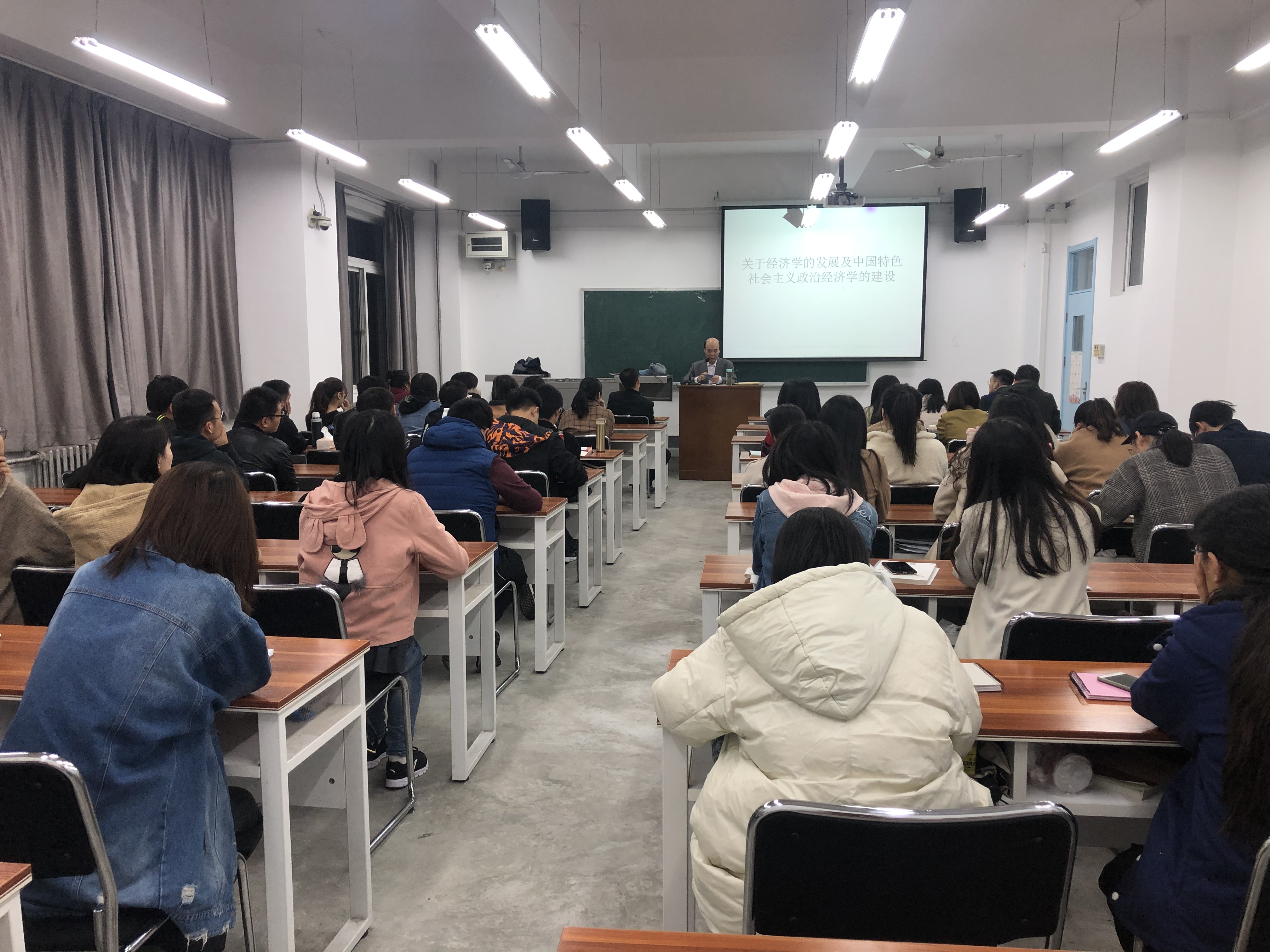 11月1日晚上19:30,公司邀请中国人民大学李义平教授在雁塔校区为师生作“关于经济学的发展及中国特色社会主义政治经济学的建设”的专题讲座。讲座由365英国上市官方网站王胜利副经理主持,公司师生代表近80人参加了本次活动。