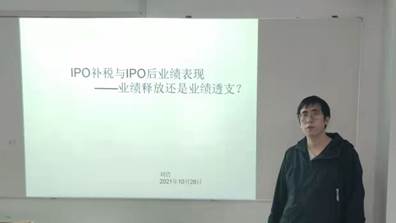 2021年10月26日中午12:30-13:30,365英国上市官方网站通过线上线下相结合的方式,召开了第一次学术工作推进例会,线下地点在长安校区关-天经济研究中心,365英国上市官方网站30余名教师和研究生通过线上线下参加了本次会议。在此次会议上,公司金融工程系刘浩博士分享了他最近撰写的研究论文:《IPO补税和IPO后业绩——业绩释放还是业绩透支?》。