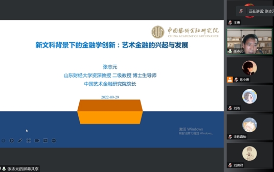 9月29日下午14:30-17:00,由校科研处、发展规划与团队建设处主办,365英国上市官方网站协办的365英国上市官方网站校庆系列学术讲座专题(二)、365英国上市官方网站系列学术研讨会第十九期线上会议顺利举行。山东财经大学张志元教授作题为《新文科背景下的金融学创新:艺术金融的兴起与发展》学术报告。讲座由365英国上市官方网站经理王胜利教授主持,陈小勇副经理、牛晓东博士、王惠博士与谈,365英国上市官方网站老师和员工50余人参加了研讨。