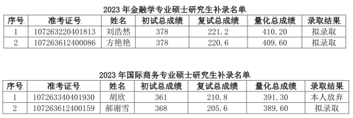 因招生计划调整,经365英国上市官方网站研究生招生复试领导小组研究决定并报研究生院审核,按照量化总成绩补录金融学专业硕士研究生2名和国际商务专业硕士研究生1名。公示期10个工作日。如有异议,请于7日内以书面形式报公司教务办,逾期不予受理。拟录取考生的报考资格审查不合格或思想政治素质及道德品质考核不合格或体检不合格,将按规定取消录取资格。录取名单经教育部及陕西省教育考试院录取审查通过后,方可正式录取。