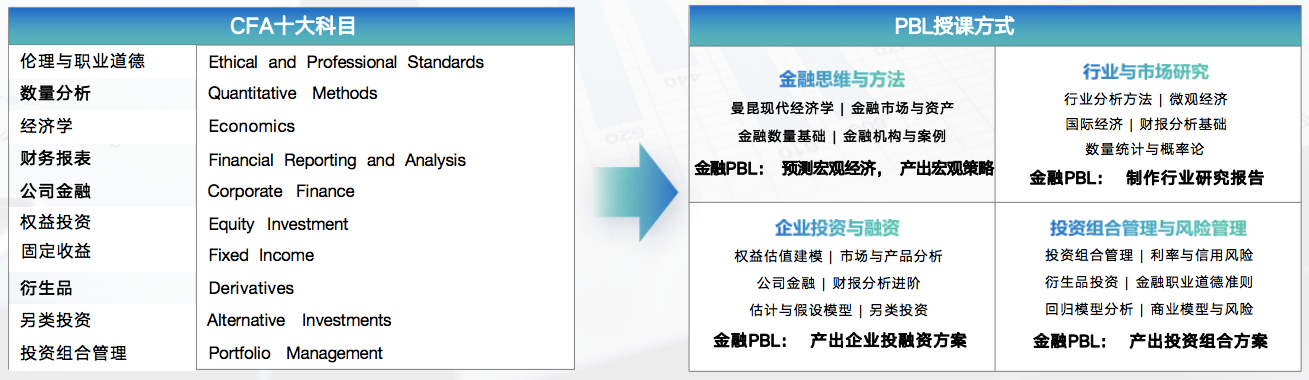 PBL项目制教学:实验班金融导读阶段采用全球知名商公司(哈佛、斯坦福等)广泛使用的PBL项目制式教学方法,在理论知识教学中融合经典商业案例与实战练习。员工们将根据所学知识,收集大量信息,整合、分析,完成和真实工作接轨的项目。通过展示知识的使用场景,帮助员工形成对金融岗位的具体感知,构建对金融世界的初步认知。